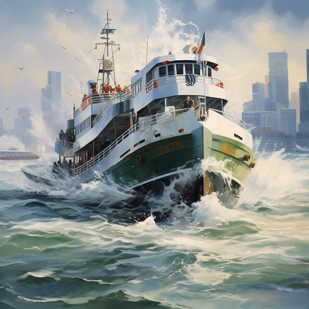 12x images of a ferries and junks in the waters of Hong Kong harbour. Some in typhoon waters some in style of Monet and Zhou